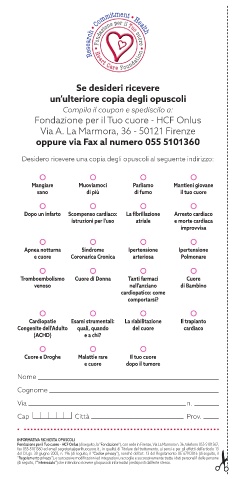 Fondazione per il Tuo cuore – HCF Onlus (di seguito, la “Fondazione”), con sede in Firenze, Via La Marmora n. 36, telefono 055-5101367,